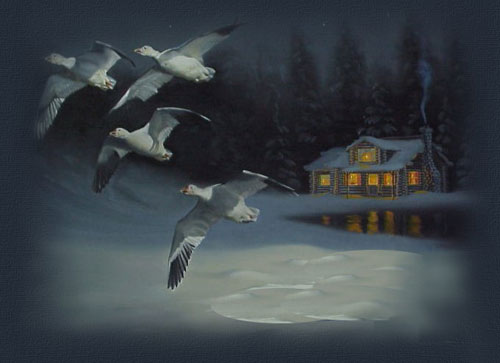 When the snow let up a little, he ventured outside to see what could have been beating on his window. In the field near his house he saw a flock of wild geese. Apparently they had been flying south for thewinter when they got caught in the snowstorm and couldn't go on. They were lost and stranded on his farm, with no food or shelter. They just flapped their wings and flew around the field in low circles, blindly and aimlessly. A couple of them had flown into his window, it seemed.